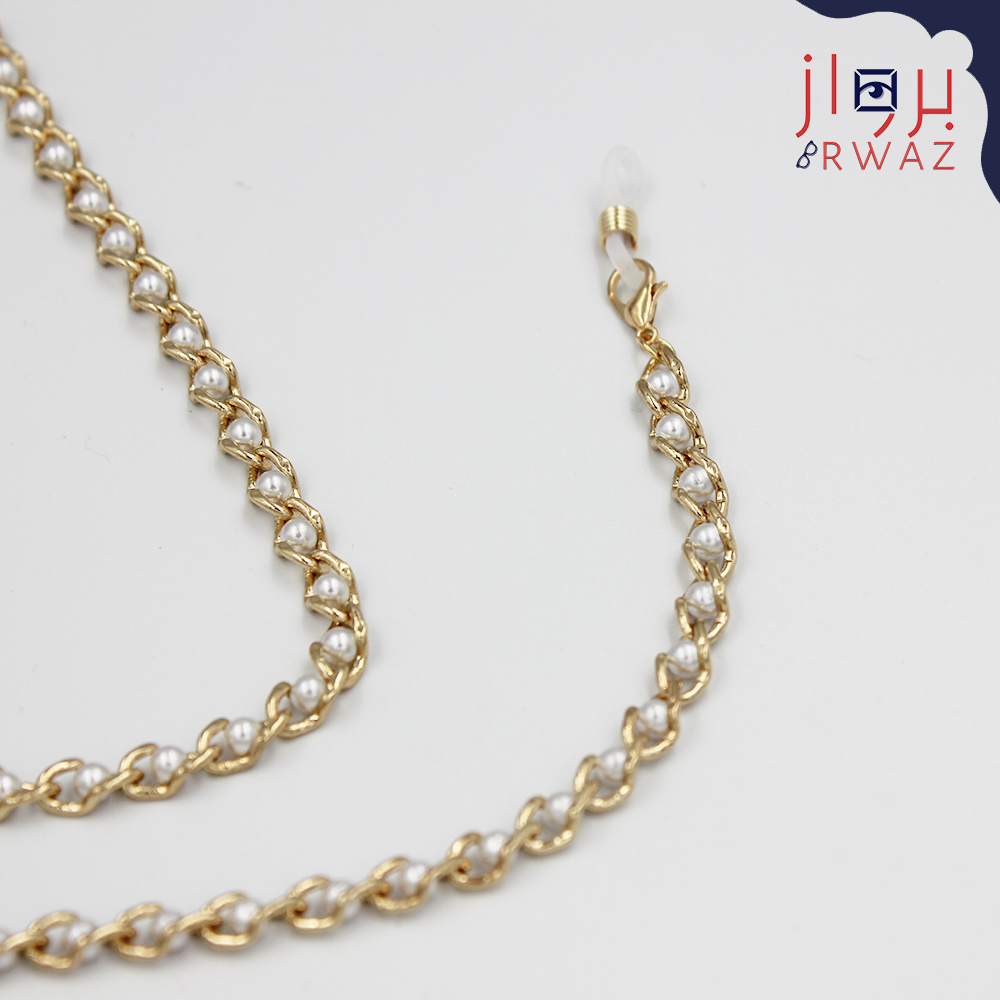 سلسلة معدن بلون ذهبي مزينه بالكامل باللؤلؤ